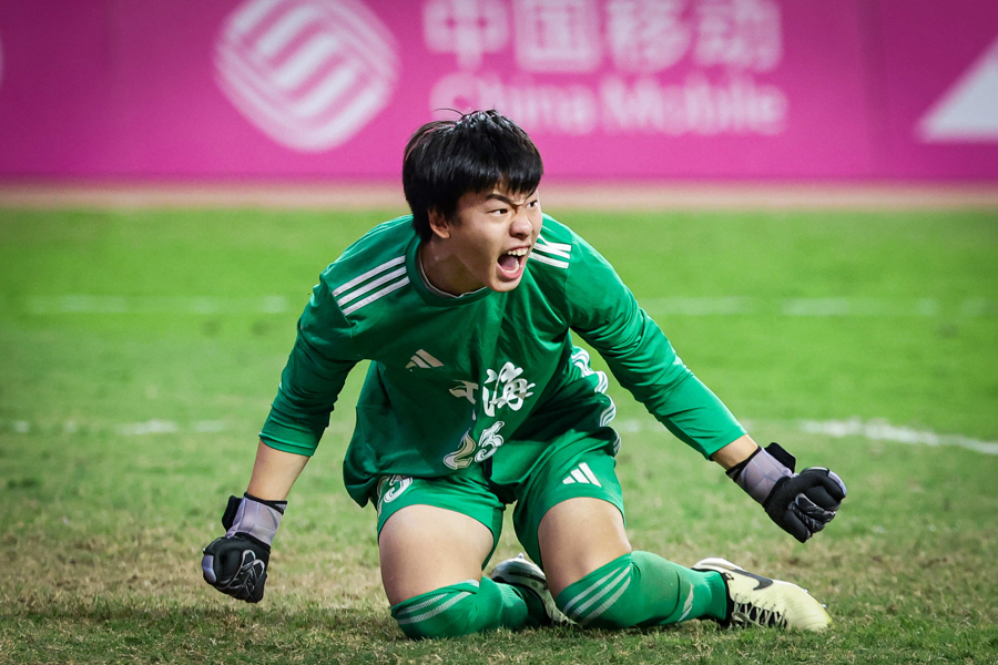 上海队门将刘浩然此役发挥神勇,在点球大战中扑出一球